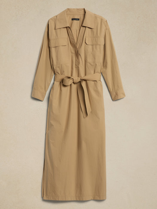 - Ultimate versatility, this popover-style shirt dress has a high slit at the side, an at-ease fit through the shoulders and an optional belt at the waist—all crafted in our crisp cotton poplin for a sophisticated finish that's easy to dress up or dress down.