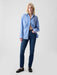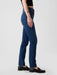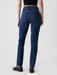 - Look: A classic five-pocket jean in a dark indigo wash.