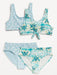 - Four-piece swim set includes two bikini swim tops and two matching swim bottoms.