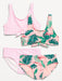 - Four-piece swim set includes two bikini swim tops and two matching swim bottoms.