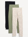 • Pack includes 3 pairs of fashion leggings, each in a different color or print.