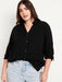 Crinkle Gauze Button-Down Boyfriend Shirt