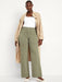 A roomy wide leg with a smaller waist, fuller hips.