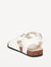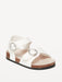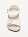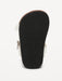 - Smooth, faux-leather upper, with double straps featuring round buckle accents.