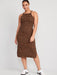 Fitted Leopard-Print Sleeveless Rib-Knit Midi Dress for Women