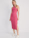 Fitted through body. Sleeveless midi dress hits mid-calf. Regular midi dress measures approx. 46”-48” long (size M) & approx. 48”-50” long (size 2X) from shoulder to hem. Petite midi dress measures approx. 43”-45” long (size M) & approx. 45”-47” long (size XXL) from shoulder to hem. Tall midi dress measures approx. 50 ½”-52 ½” long (size M) & approx. 52 ½”-54 ½” long (size XXL) from shoulder to hem. Models are wearing sizes S (numeric size 4), L (numeric size 12), and XL (numeric size 18).