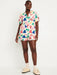 top has relaxed fit and hits below waist shorts have relaxed fit and sit high on thigh 3 1/2" inseam models are approx. 5'9" and wear sizes s (4), l (12), and xl (18)