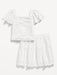 Flutter-Sleeve Floral Cutout Top and Skirt Set for Toddler Girls