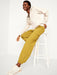 sits at belly button loose hip and thigh tapered leg hits at ankle 29" regular inseam 27" petite inseam 32" tall inseam models are approx. 5'9" and wear sizes s (4), l (12), and xl (18)