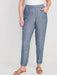 High-Waisted Chambray Cropped Linen-Blend Tapered Pants for Women