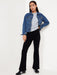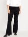 sits at belly button stretches to fit your body flare leg models are approx. 5'9" and wear sizes s (4), l (12), and xl (18)