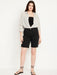 sits at belly button snug hip and thigh 9" inseam models are approx. 5'9" and wear sizes s (4), l (12), and xl (18)