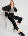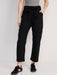 • Partially-elasticized high-rise waistband, with button closure, built-in belt loops & tie-belt fastening.