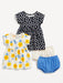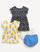 - Four-piece set includes two short-sleeve dresses and two matching bloomer shorts for baby.