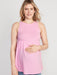 Fitted at top, with a flared hem. Maternity sleeveless top hits at hip. Model is approximately 5'9" and wears a size M (numeric size 8).