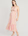 Maternity Waist-Defined Striped Halter Maxi Dress