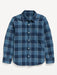 Relaxed fit through body. Boys long-sleeve patterned shirt hits below waist.
