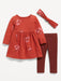 Printed Long-Sleeve Dress, Leggings, and Headband Set for Baby