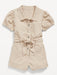 Puff-Sleeve Tie-Front Utility Romper for Toddler Girls
