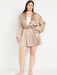 relaxed fit with a tie-belt waist hits below hip models are approx. 5'9" and wear sizes s (4), l (12), and xl (18)