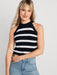 Sleeveless Striped Shaker-Stitch Cropped Sweater for Women