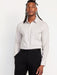 slim sleeves and chest with a tailored waist hits below waist model is approx. 6'1" and wears size m product garment tag reflects garment sizing not body sizing