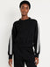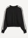 - drop-shoulder sleeves with contrasting stripes