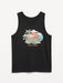 Relaxed fit through body. Men's tank top hits below waist. Model is approximately 6'1" and wears a size M.