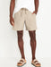 sits at waist relaxed hip and thigh hits above knee 7" regular inseam 8" tall inseam model is approx. 6'1" and wears size m (32w)