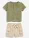 Textured Henley Pocket T-Shirt and Shorts Set for Baby