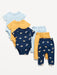 - 3 short-sleeve bodysuits in assorted prints, patterns and solid colors.
