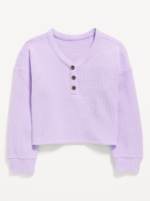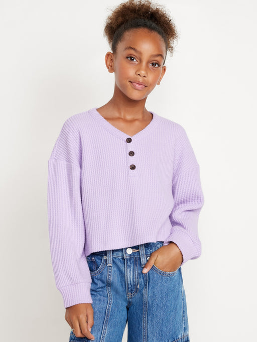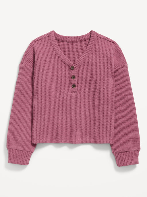 Long-Sleeve Thermal-Knit Henley Top for Girls