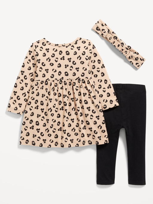 Printed Long-Sleeve Dress, Leggings, and Headband Set for Baby