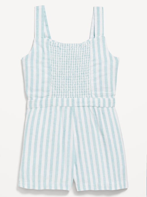 Sleeveless Printed Smocked Linen-Blend Romper for Girls