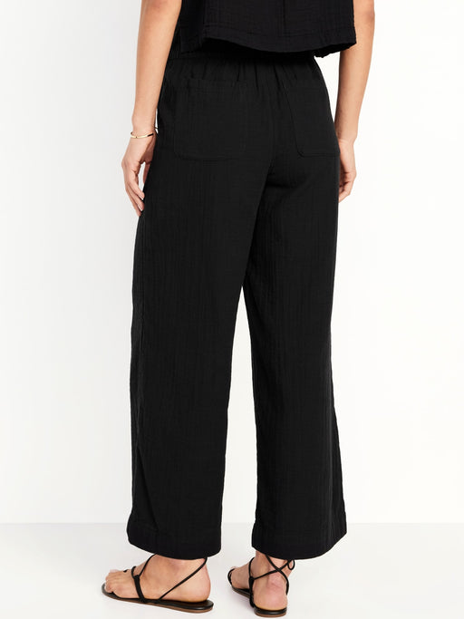 High-Waisted Crinkle Gauze Pull-On Ankle Pants