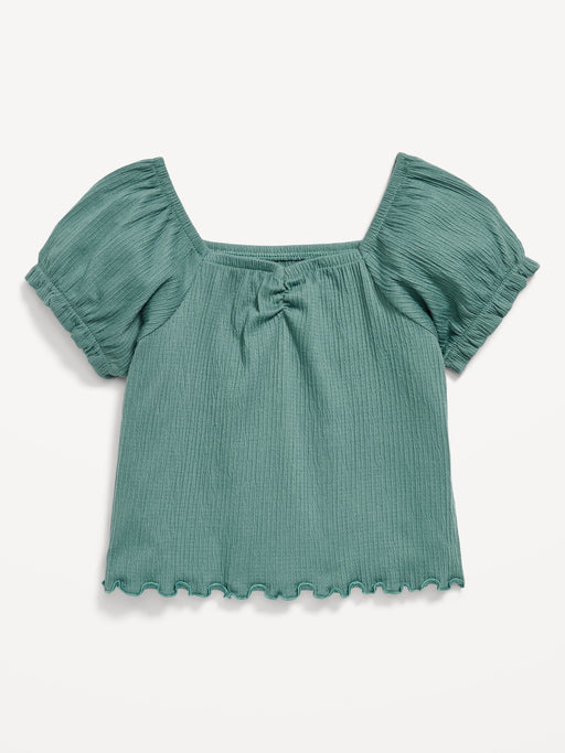 Puff-Sleeve Textured Sweetheart-Neck Top for Girls