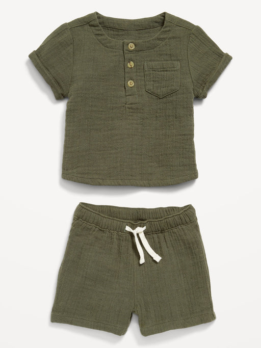 Unisex Short-Sleeve Pocket T-Shirt and Pull-On Shorts Set for Baby