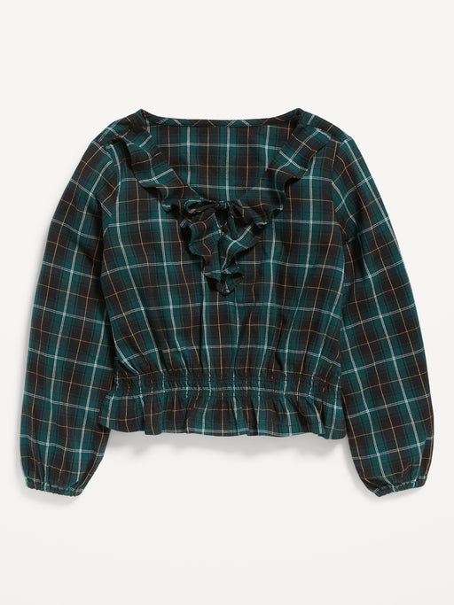 Long-Sleeve Plaid Ruffle-Trim Top for Girls
