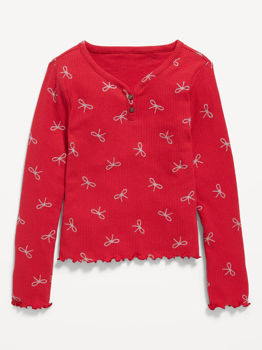 Rib-Knit Lettuce-Edge Henley T-Shirt for Girls
