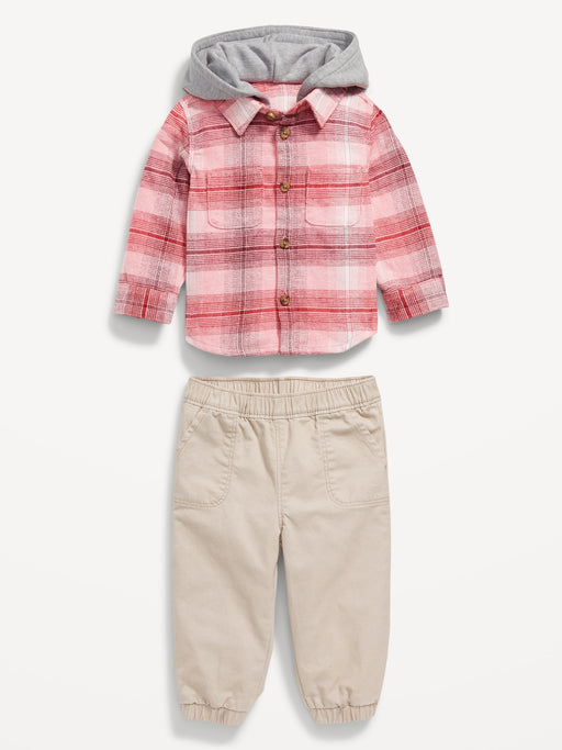 Hooded Soft-Brushed Flannel Shirt & Jogger Pants Set for Baby