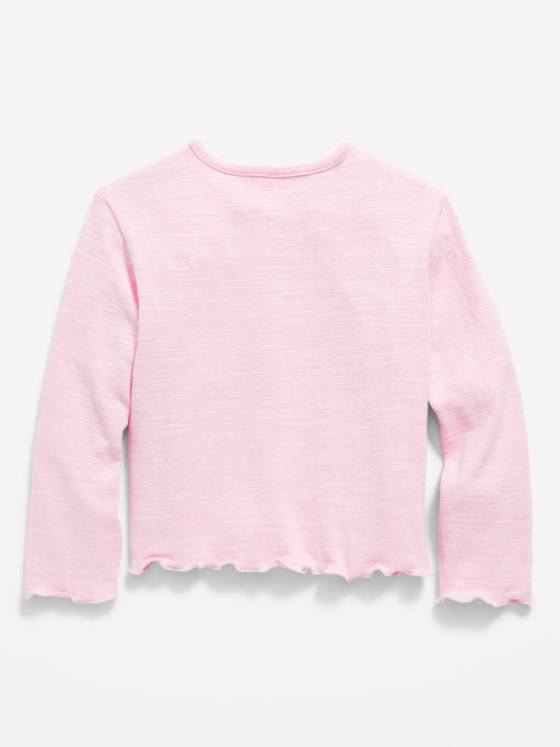 Button-Front Lettuce-Edge Cardigan Sweater for Toddler Girls