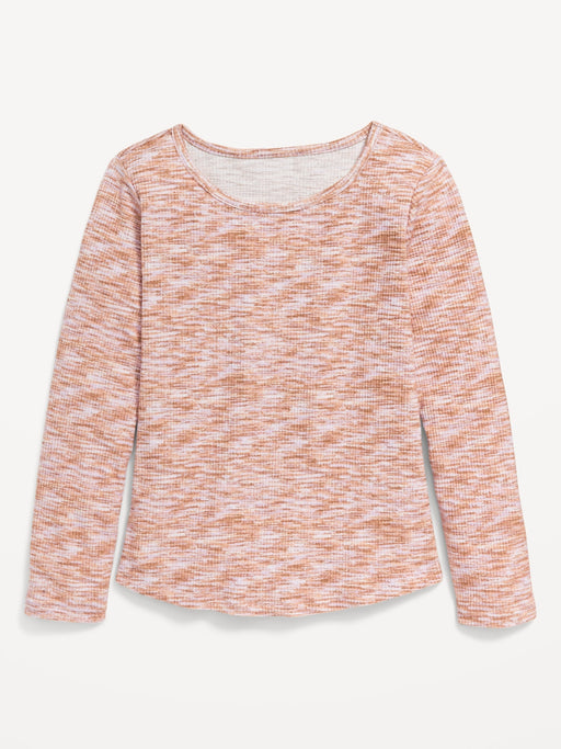 Cozy Long-Sleeve Printed Rib-Knit T-Shirt for Girls