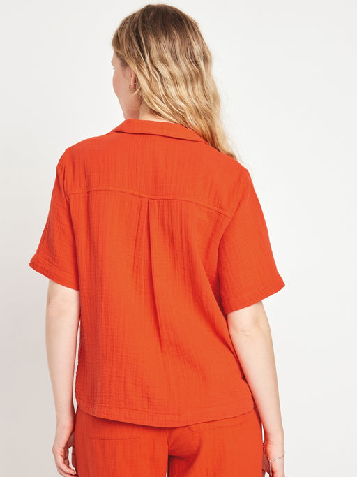 Crinkle Gauze Button-Down Top