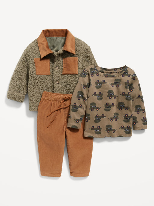 Old NavyOriginal price $49.99Original price $49.99 - Original price $49.99Original price $49.99Current price $24.97$24.97 - $24.97Current price $24.97| /3-Piece Unisex Printed T-Shirt, Shacket, and Pants Set for Baby