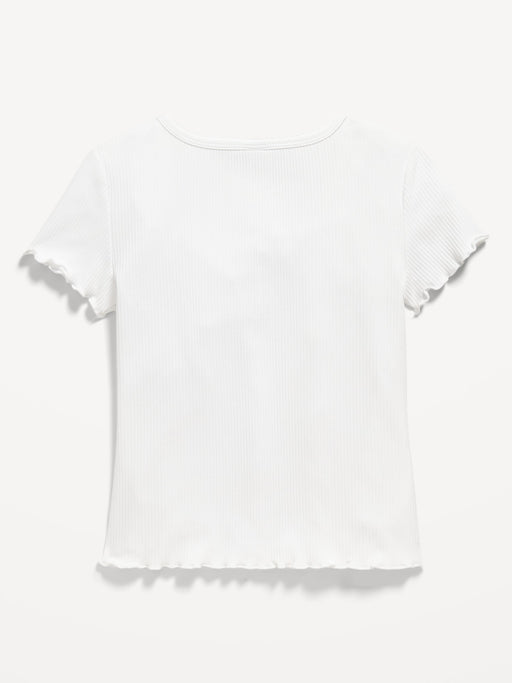 Rib-Knit Lettuce-Edge Button-Front T-Shirt for Girls