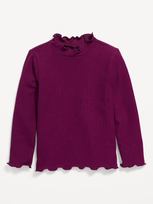 Long-Sleeve Lettuce-Edge Mock-Neck Top for Toddler Girls
