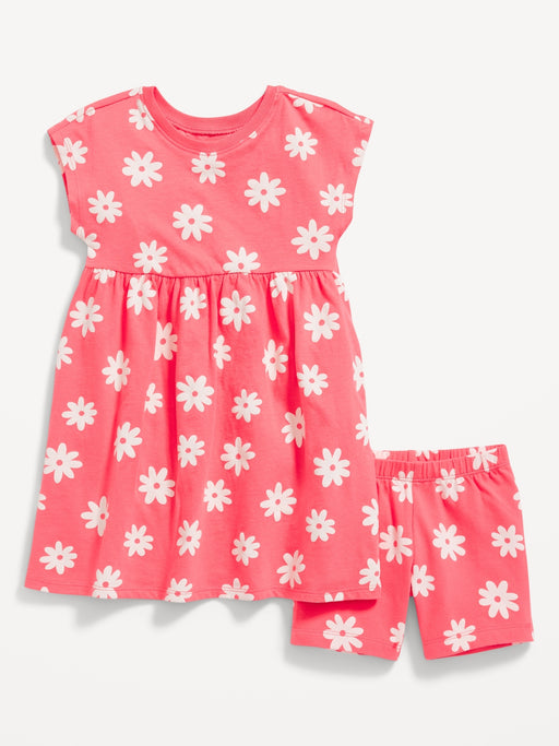 Short-Sleeve Dress & Biker Shorts Set for Toddler Girls