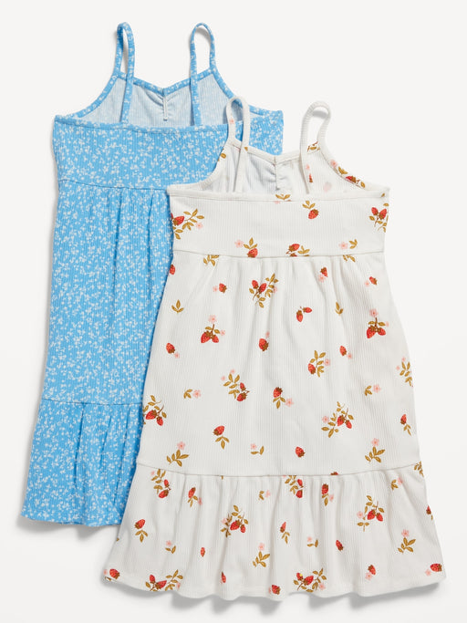 Sleeveless Printed Rib-Knit Swing Dress 2-Pack for Girls