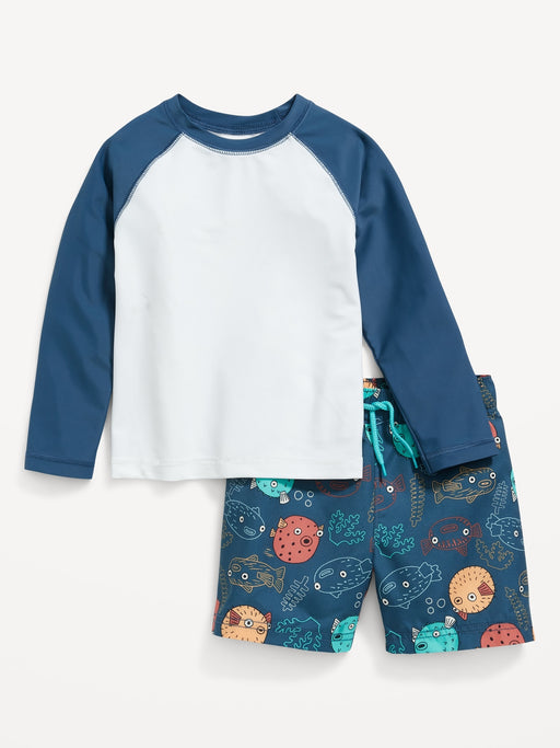 Unisex Graphic Rashguard Swim Top & Trunks for Toddler & Baby