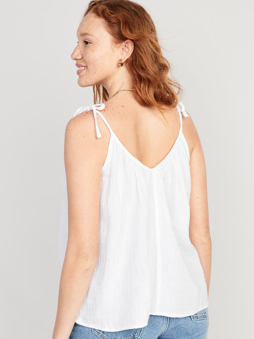 Tie-Shoulder Double-Weave Cami Swing Top for Women